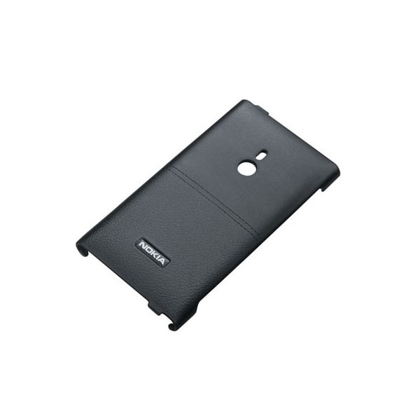 Coque arrière en cuir noir de luxe d'origine Nokia pour la protection du Nokia Lumia 800 avec marquage du logo Nokia.