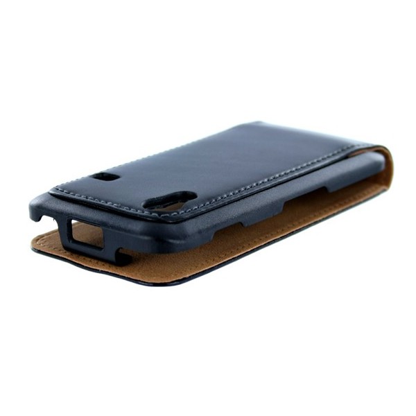 Etui pour Galaxy Ace en cuir noire avec système d'ouverture vertical.