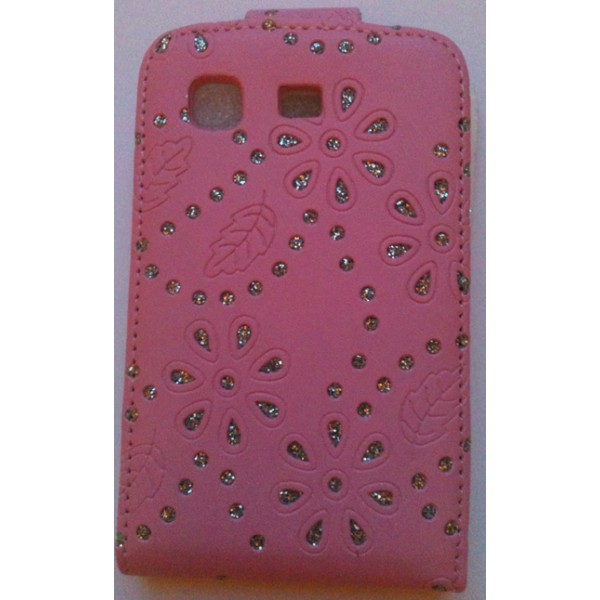 Housse rose à rabat pour Samsung Galaxy Pro B7510 avec strass (paillettes incrustèes)
