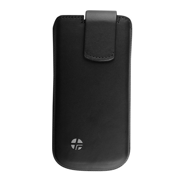 Housse noire en cuir de la marque Trexta pour iPhone 5.
